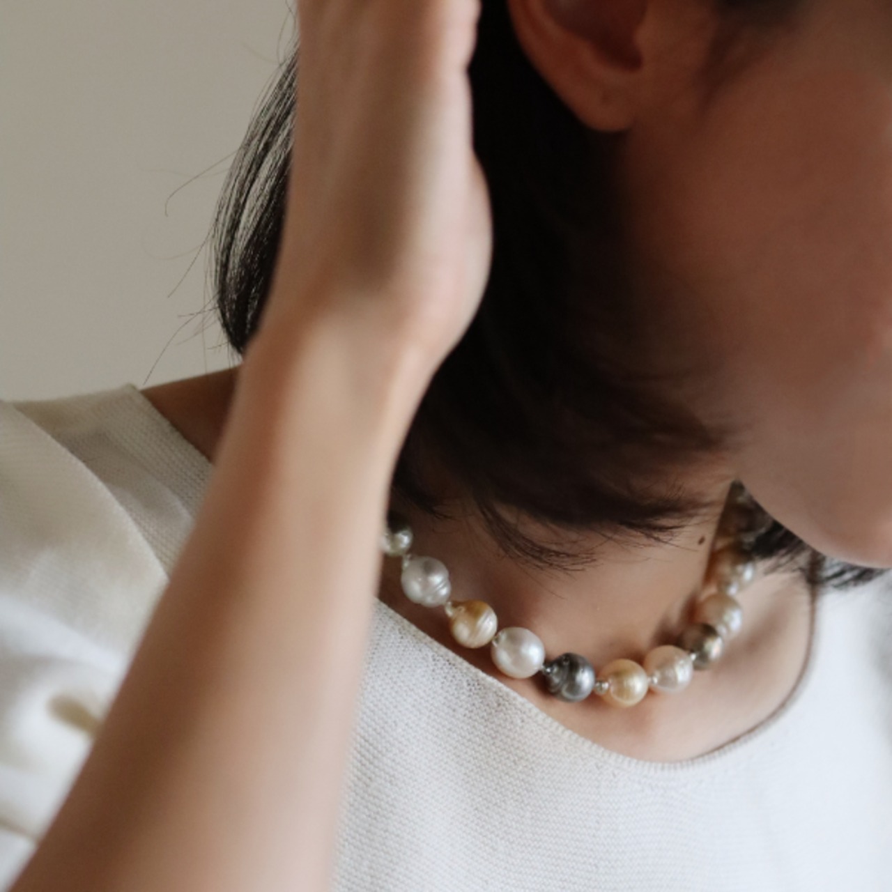 南洋真珠の様々な色を贅沢に楽しめるネックレスです。