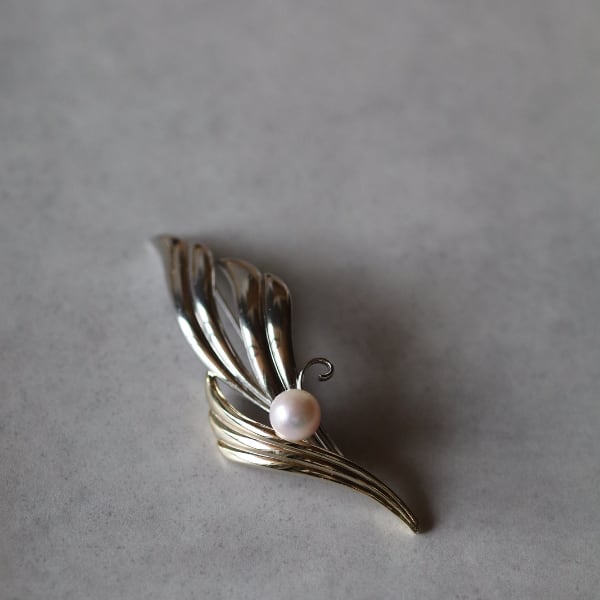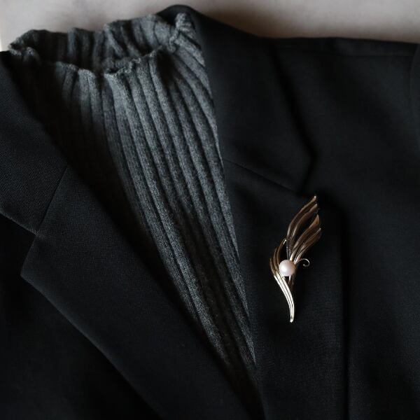 スタイリッシュなパールブローチ。