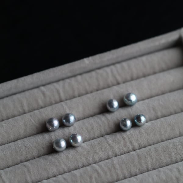 【4点限定】グレーアコヤ真珠のスタッドピアス あこやパール ブルーグレー 14kgf 7mm 8mm 金属アレルギー