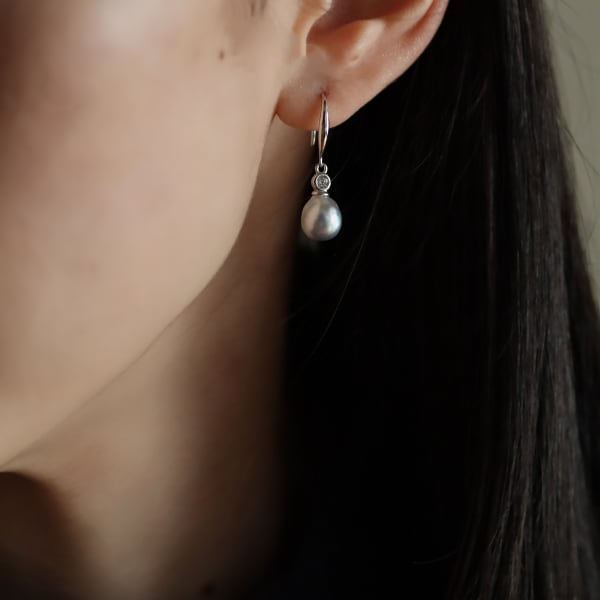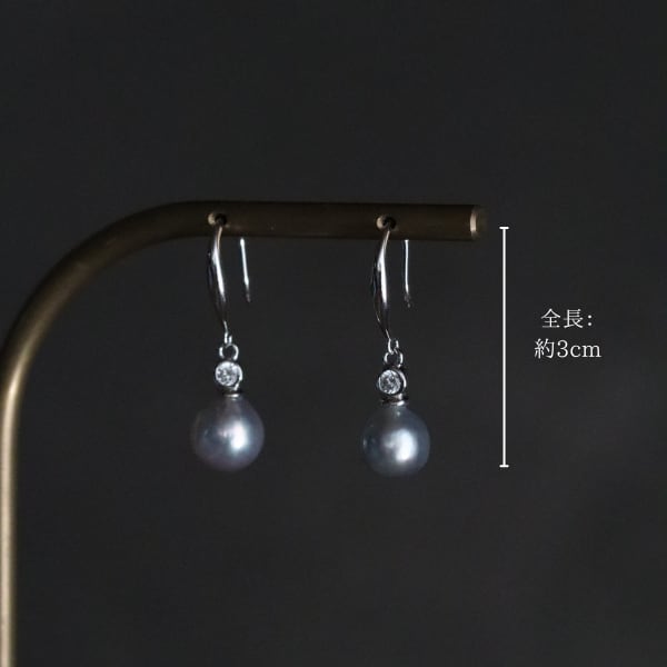 グレーアコヤとジルコニアのフックピアス 選べる Silver925 あこや真珠 cz ギフト