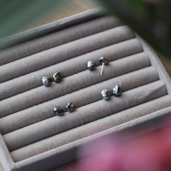 【4点限定】黒蝶ケシパールのスタッドピアス クロチョウ 南洋真珠 Silver925 シルバー メンズパール